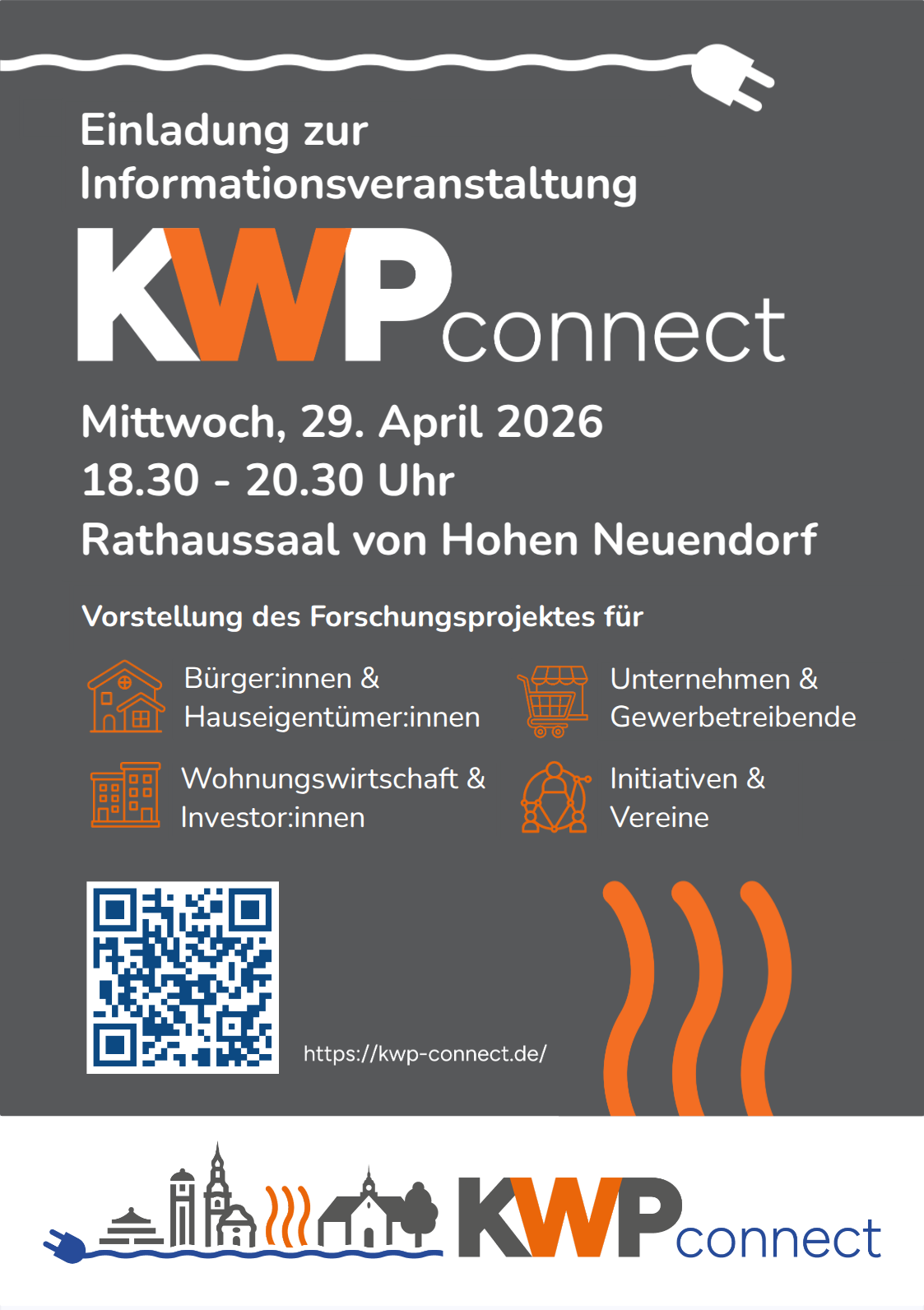 KWPconnect verbindet die Kommunale Wärmeplanung mit der Energiesystemanalyse, um klimaneutrale Wärmeversorgung systemisch und umsetzungsnah zu gestalten. In den Kommunen Hohen Neuendorf und Birkenwerder werden integrierte Quartierslösungen entwickelt, die Stromnetze entlasten, erneuerbare Energien effizient nutzen und lokale Akteur:innen frühzeitig einbinden. Das Projekt läuft von Oktober 2025 bis September 2027 und schafft übertragbare Methoden und Handlungsempfehlungen für eine energiesystemdienliche Umsetzung der kommunalen Wärmewende.